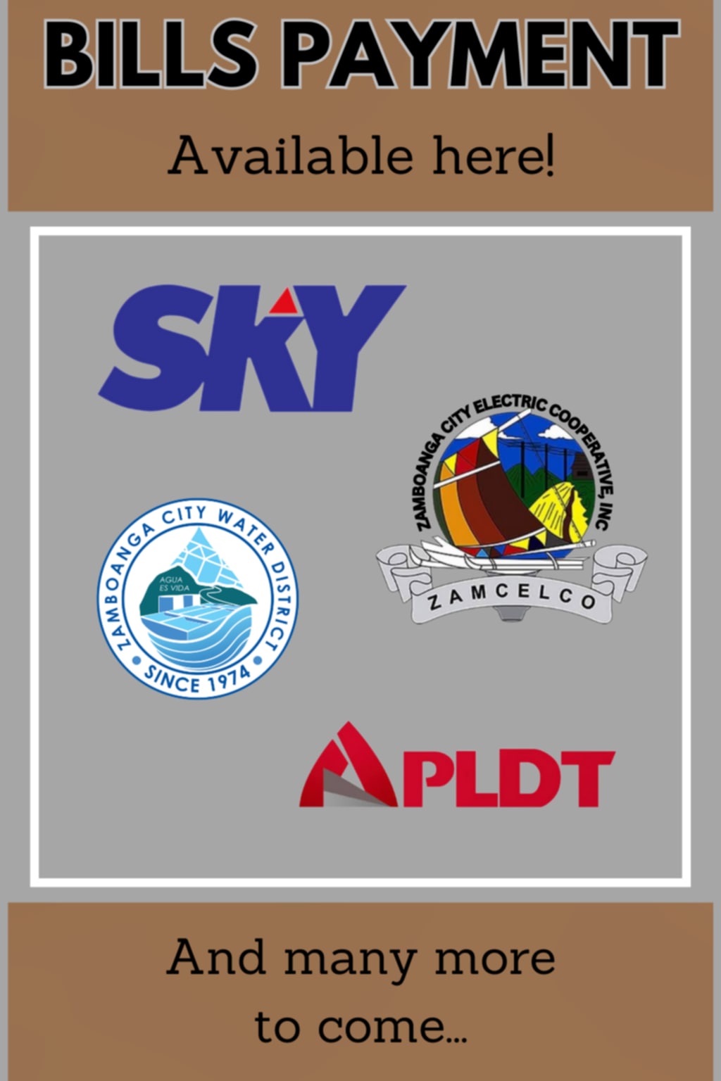 - Bills Payment (SKY, PLDT, ZCWD (Water), ZAMCELCO (Light)