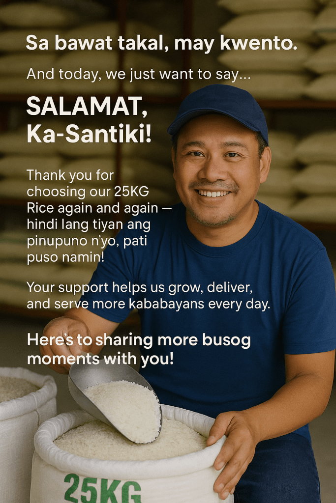 Thank you for choosing our 25KG Rice again and again — hindi lang tiyan ang pinupuno n’yo, pati puso namin!