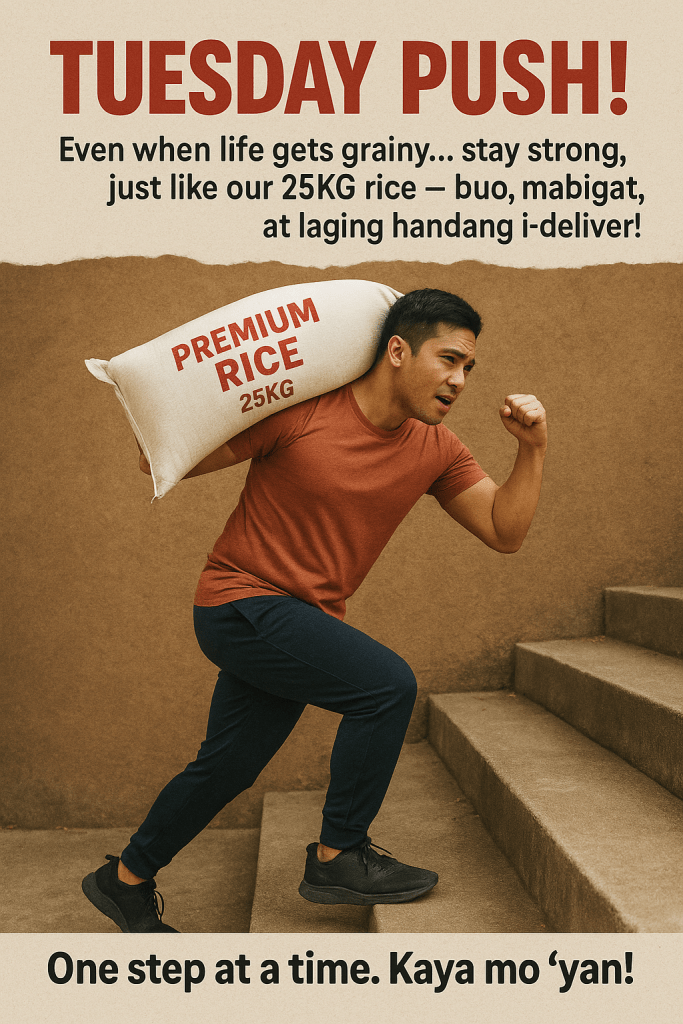 Even when life gets grainy… stay strong, just like our 25KG rice — buo, mabigat, at laging handang i-deliver!